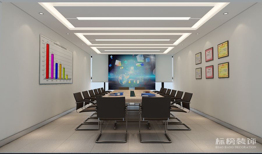 需要創造一種專業、有序、簡潔的辦公環境。為適應辦公室靈活多變、舒適裝修的要求,設計師在視覺設計上進行了合理規劃,強調了層次化繪制。