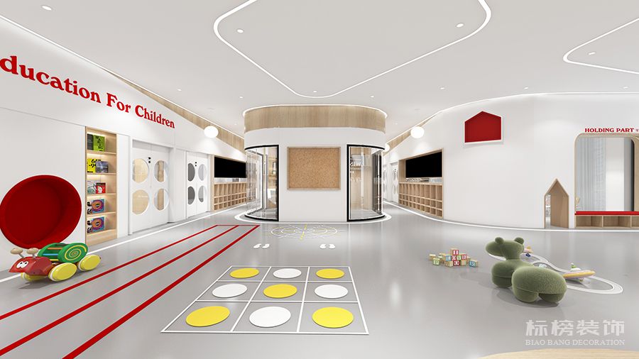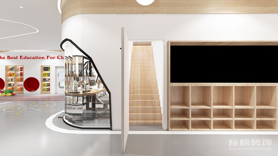 整體為比較純凈的白色和松木色為主,地板則選用灰色耐臟的色號,合理的色彩搭配再加上適合的空間結構為老師學生帶來歡快的環境縈繞,同時使家長在進入機構時不會覺得過于擁擠雜亂,給家長留下優秀的第一映像。