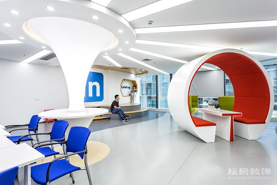 開放的設計思路及風格,為企業形象增光添彩,給員工關懷減壓。歡快的色彩,多元化的造型,以及硬裝及軟裝的搭配設計,更易于工作者調節心情與開拓思路,間接的提升了工作效率及質量。